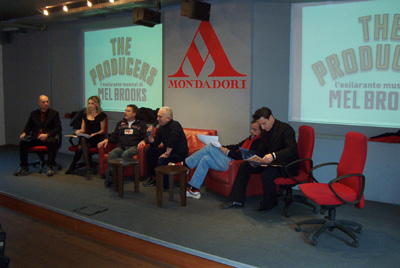 Affollata conferenza stampa questa mattina nel negozio Mondadori di Via Marghera a Milano, per la presentazione di "The Producers", il musical di Mel Brooks che, con la regia di Saverio Marconi, debutterà venerdì 27 gennaio al Teatro della Luna di Milano/Assago. Sono intervenuti, oltre al regista, i protagonisti dello show: Enzo Iacchetti, Gianluca Guidi, Gianfranco Phino, Simona Samarelli, Fabrizio Angelini (che firma anche le coreografie), e Marco Massari. Ecco il nostro servizio fotografico.