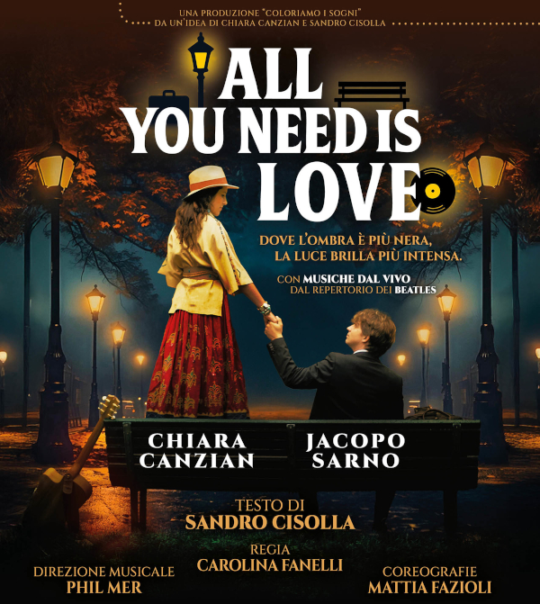 È attesa giovedì 11 dicembre al Teatro Santa Giulia di Brescia l’anteprima assoluta di “All You Need Is Love“, un nuovo spettacolo di teatro musicale nato da un’idea originale di Chiara Canzian e Sandro Cisolla, sintesi delle diverse professioni e passioni che li animano: lui scrittore di narrativa e copywriter, lei con varie esperienze rilevanti nel teatro (regista residente in Casanova Operapop, performer in Cats nel ruolo di Grizabella come alternate di Malika Ayane), cantautrice e life-coach.