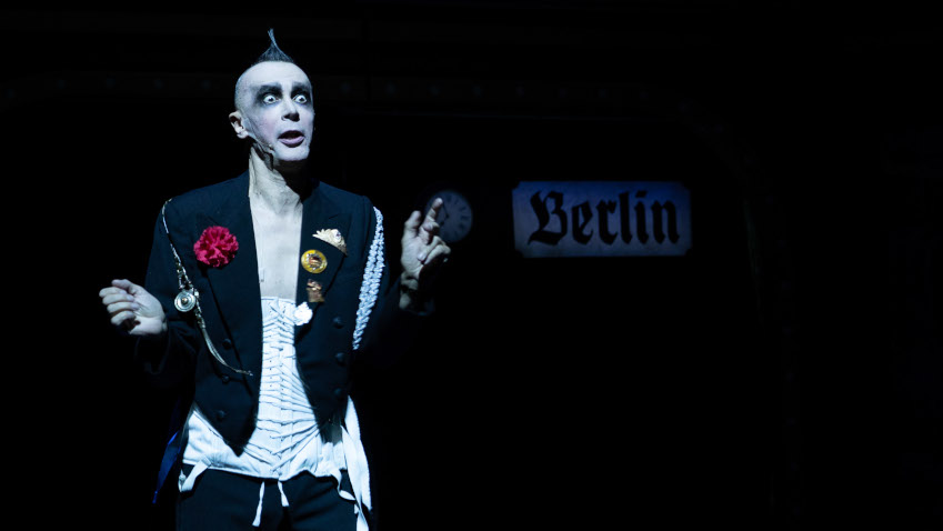 Lo spettacolo narra la storia di un americano sbarcato a Berlino che incontra e si innamora di Sally (Diana Del Bufalo), ragazza inglese dai liberi costumi. Condividono una stanza in una pensione modesta, tenuta da una anziana zitella tedesca innamorata a sua volta di un fruttivendolo ebreo. Fulcro della narrazione è il Cabaret Kit Kat Club dove EMCEE, un presentatore ambiguo e irriverente (Arturo Brachetti), si prende gioco della libertà sessuale e del potere. Alla fine, l’arrivo del nazismo spegne questa libertà di pensiero e di costumi per lasciar posto al periodo nero che tutti conosciamo e che la storia punirà. In scena poi Cristian Catto, Clifford Bradshaw – Christine Grimandi, Fraulein Schneider – Fabio Bussotti, Herr Schultz – Giulia Ercolessi, Fraulein Kost – Niccolò Minonzio, Ernst Ludwig.