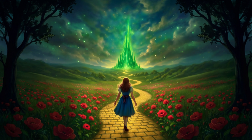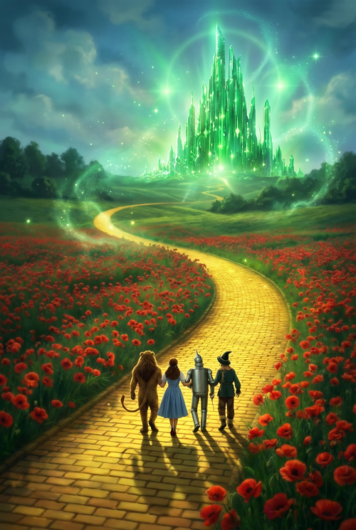 Catapultata da un ciclone nel meraviglioso e bizzarro Regno di Oz, Dorothy, una ragazzina del Kansas, intraprende un viaggio alla ricerca del potente Mago che, forse, potrà aiutarla a tornare a casa. Lungo la Strada di Mattoni Gialli, incontra tre compagni indimenticabili: uno Spaventapasseri che sogna un cervello, un Uomo di Latta che desidera un cuore, e un Leone che cerca il coraggio. Insieme affronteranno prove, magie e incontri sorprendenti in un mondo dove nulla è come sembra.
