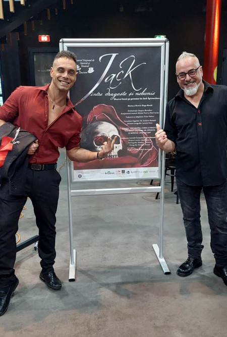Vi avevamo parlato a giugno del musical “Jack Pazzia e Amore” che avrebbe debuttato a Bucarest. Lo spettacolo si è rivelato un grande successo e quindi un’enorme soddisfazione per gli autori italiani Diego Mecchi – compositore, regista e scrittore – e Damiano Bisozzi – coreografo, danzatore e regista-. Il musical in chiave Symphonic Rock ha conquistato il pubblico del “Teatrul Național de Operetă și Musical “Ion Dacian” di Bucarest (Romania) con una standing ovation di venti minuti oltre a numerosi applausi a scena aperta. L’autore spiega “Io e Damiano ci aspettavamo che lo spettacolo piacesse perché dopo anni di lavoro era arrivato alla perfezione, grazie al lavoro di Gaspare Bartelloni “Orchestratore dell’opera” e di due giovani e geniali arrangiatori “Howl Jordan e Matteo Teani” Damiano Bisozzi ha poi creato coreografie che avrebbero parlato anche senza il testo, Damiano è geniale, il suo stile è davvero unico, quando ci siamo trovati sul palco abbiamo visto un teatro in sold out, tutto il pubblico in piedi che applaudiva e gridava ininterrottamente, li abbiamo capito che il nostro lavoro era davvero piaciuto, siamo veramente felici, adesso JACK sarà in programmazione a Bucarest per un anno ma abbiamo già molte proposte per portarlo in altri paesi, compresa l’Italia, ci sono un sacco di novità che vi faremo sapere presto, molto presto. L’opera ha avuto un allestimento importante grazie alla colossale produzione del Teatrul Național de Operetă și Musical “Ion Dacian”, con costumi e scenografie meravigliose, un coro dal vivo in costume di circa 25 persone, oltre 20 Danzatori, luci pazzesche. Un grazie di cuore a tutta la produzione.