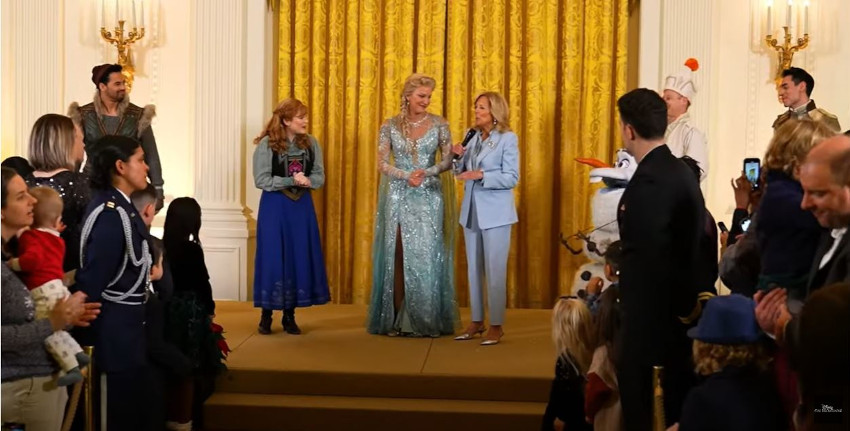 Il cast del musical “Frozen” (tour Nord America) è stato ospite alla Casa Bianca per una festa a carattere natalizio, eseguendo una selezione dei momenti salienti dello spettacolo. I membri del cast Caroline Bowman (Elsa), Lauren Nicole Chapman (Anna), Jeremy Davis (Olaf), Dominic Dorset (Kristoff) e Preston Perez (Hans) sono stati accolti dalla First Lady Jill Biden per celebrare l’inaugurazione delle decorazioni natalizie della Casa Bianca . Le famiglie della Guardia Nazionale sono state le prime a vedere le decorazioni e poi hanno assistito allo spettacolo.